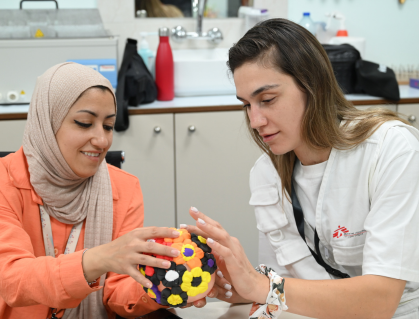 Le storie dei pazienti si intrecciano inevitabilmente con quelle del personale: infermieri, fisioterapisti, psicologi, psichiatri, mediatori culturali, operatori sociali. Il 98% dello staff è giordano, altri provengono invece dall’Iraq o da altri Paesi. Molti tra i giordani sono di origine palestinese, anche per questo l’impatto della guerra di Gaza non è stato solo clinico, ma profondamente emotivo, c’è stato un forte contraccolpo psicologico. Tra il personale ci sono anche ex pazienti che praticano la peer therapy, la terapia tra pari: sanno cosa vuol dire essere vittime di guerra, hanno imparato a superare le difficoltà e affiancano chi è appena arrivato, non solo sul piano emotivo ma anche pratico. Infermieri e fisioterapisti, che toccano fisicamente i pazienti ogni giorno, instaurano con loro un rapporto intimo e profondo. In quel contatto si prendono addosso una parte del loro dolore.