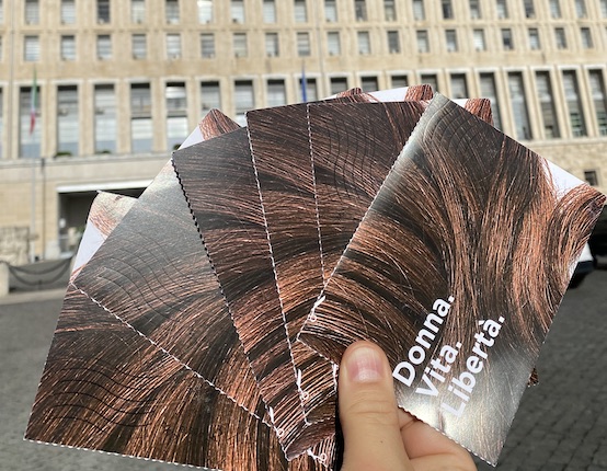 Le cartoline da ritagliare raffigurano simbolicamente una ciocca di capelli come quella che ha portato all’uccisione della giovane iraniana Mahsa Amini, a Teheran nel settembre scorso, scatenando la ribellione di vasti strati della popolazione contro il regime degli ayatollah. In due mesi si è mossa la campagna che ha visto mobilitarsi nei negozi i soci Coop e via via arrivare migliaia di cartoline che sono state poi raccolte e sono approdate a Roma, per essere consegnate all’ambasciatore iraniano Mohammed Reza Sabouri.